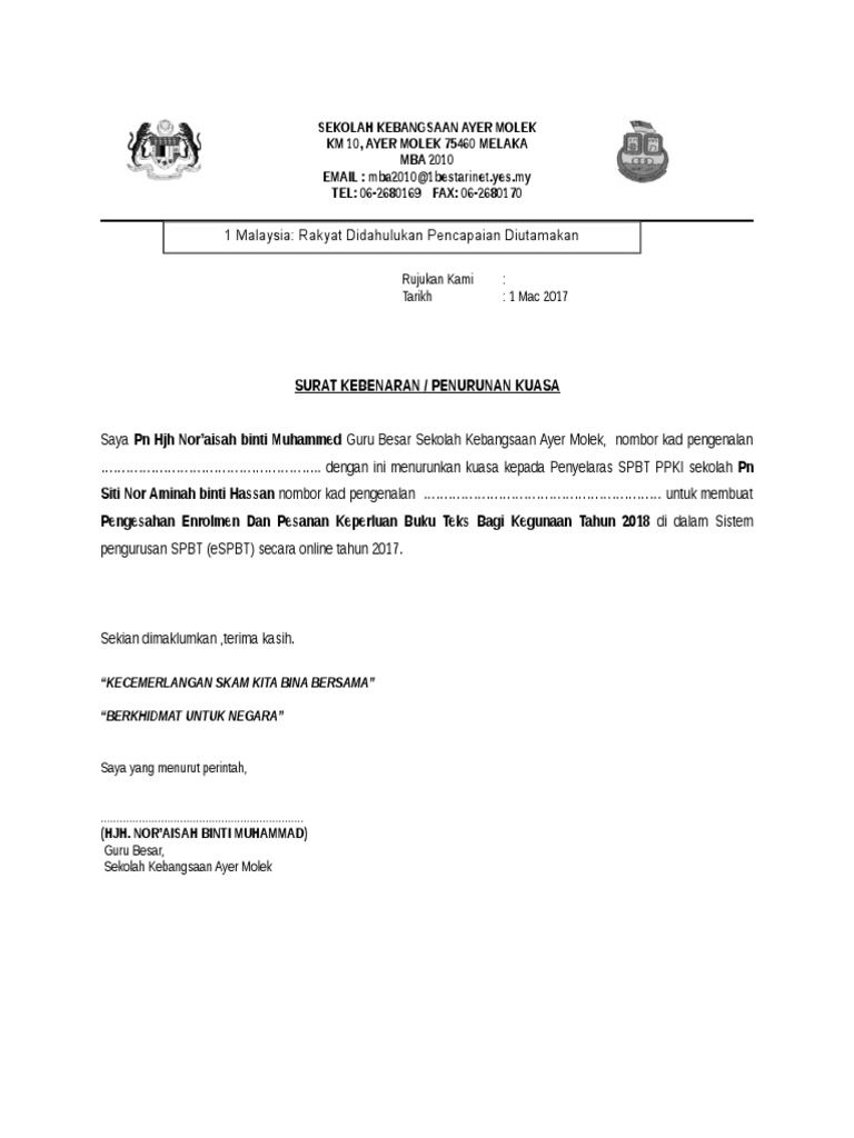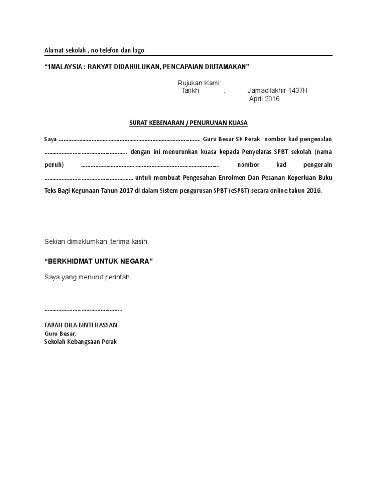 Contoh Surat Penurunan Kuasa Pengetua Pengakap Pdf
