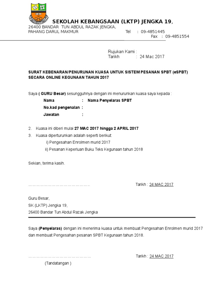 Contoh Surat Turun Kuasa Espbt Pdf